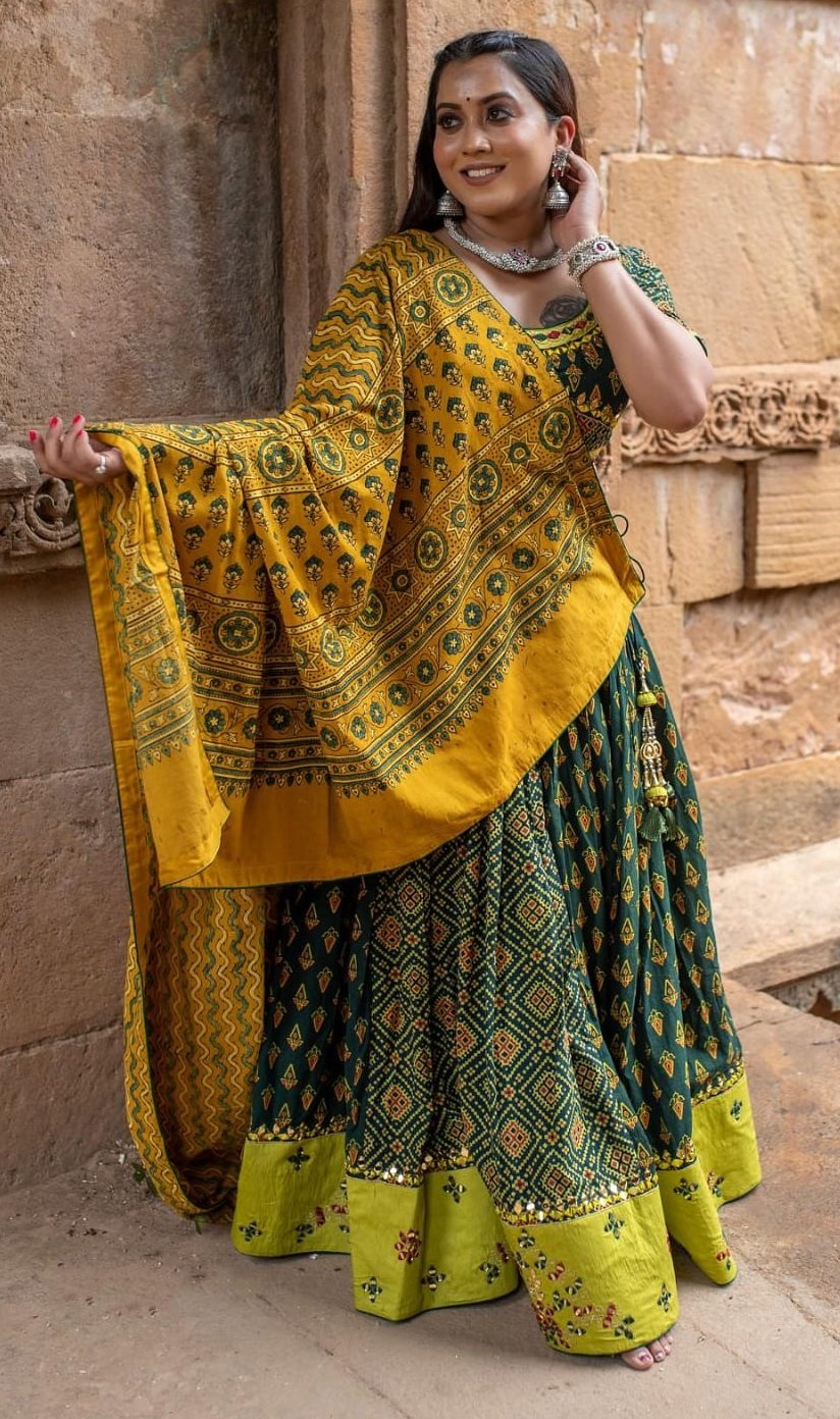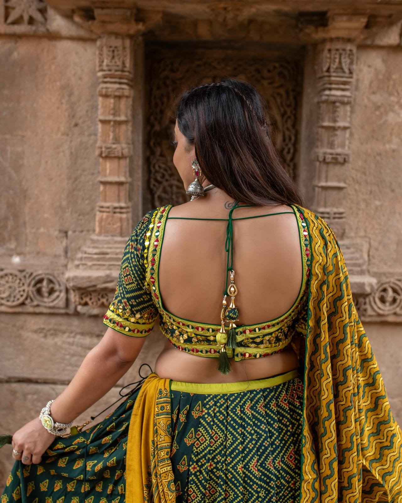 Trend Alert The fashion industry is buzzing with the latest trend of printed green lehenga cholis and I couldn’t be more thrilled! This stunning ensemble adds elegance and uniqueness to any traditional look. Be it a wedding or a festive occasion, this trend is perfect for making a statement. So, if you want to stand out from the crowd, don’t miss this must-have piece. You will turn heads and set trends wherever you go.